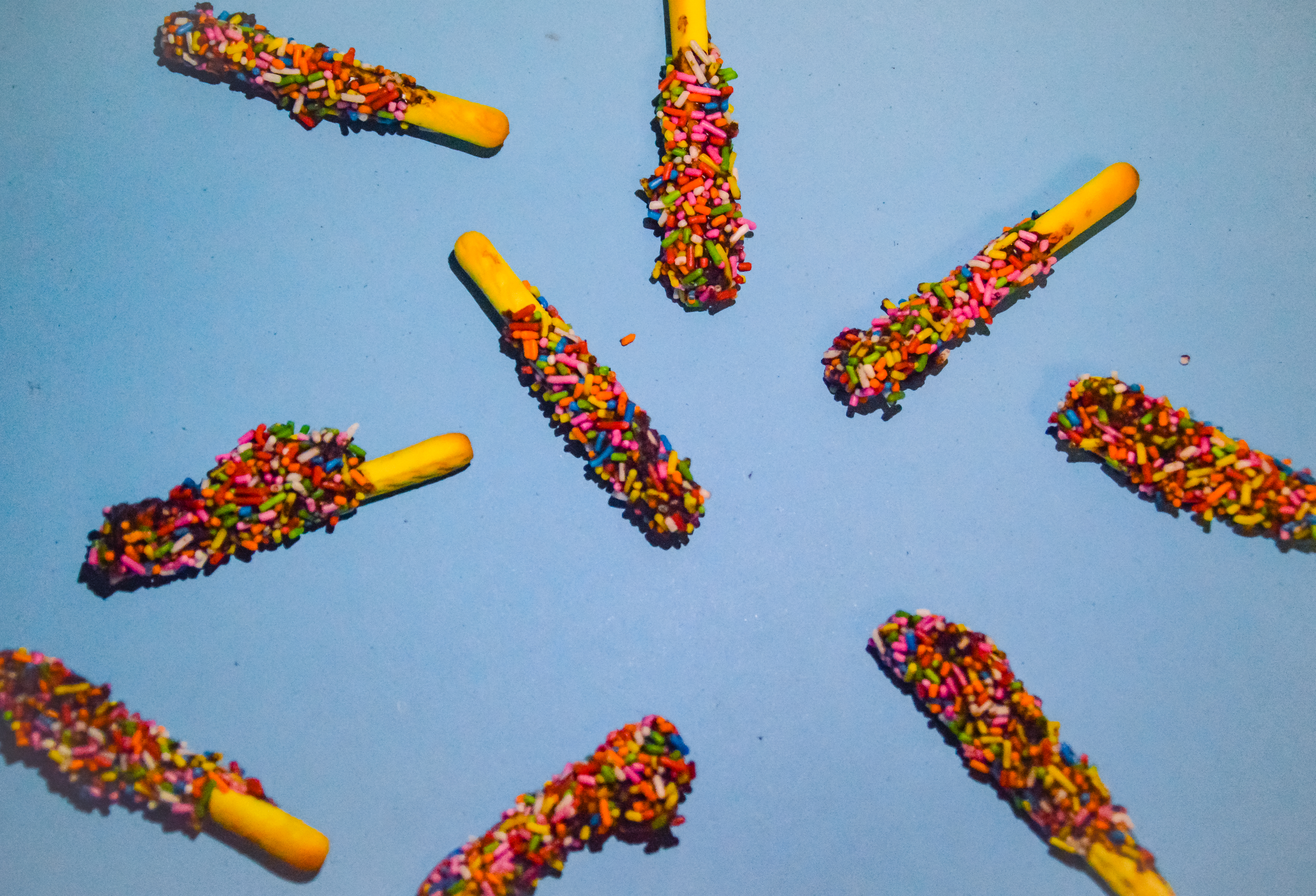 - 막대 과자에 초콜릿을 묻혀 데코를 뿌린다.